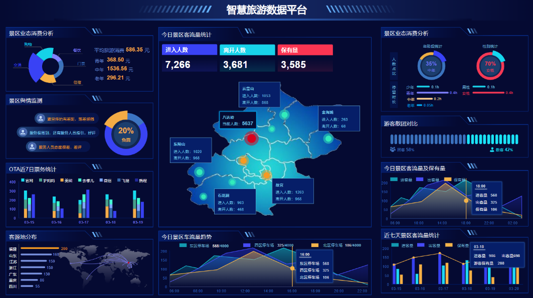 如何在旅途中給游客帶來更方便、舒適、快捷、智慧的服務成為了旅游行業必不可少的重大課題,其中吃、住、行、游、購、娛是游客的最直接體驗,面對游客和景區的種種需求,我公司整合現有技術資源(如大數據、云計算、互聯網等技術)實現景區和游客數據分析、數據管理、數據決策;同時我公司采用了先進的物聯網技術和信息化技術,從而提高游客的旅游體驗和景區的管理的體驗。